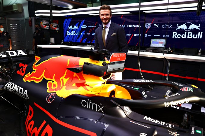 Red Bull のガレージには、ベッカム選手が😍😍