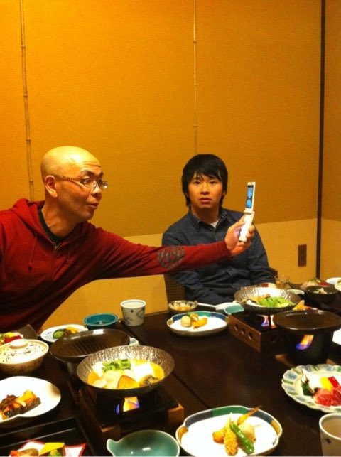 写真はタネを回収する若林さんとメニューを見る春日さんです。