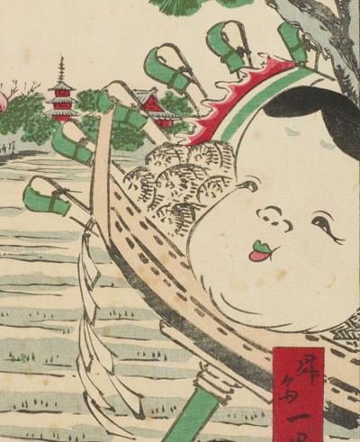 大熊手のおかめ(お多福?)さん、笹紅でオシャレ(MT) #貴重書 pic.twitter.com/jnpDekVIkT