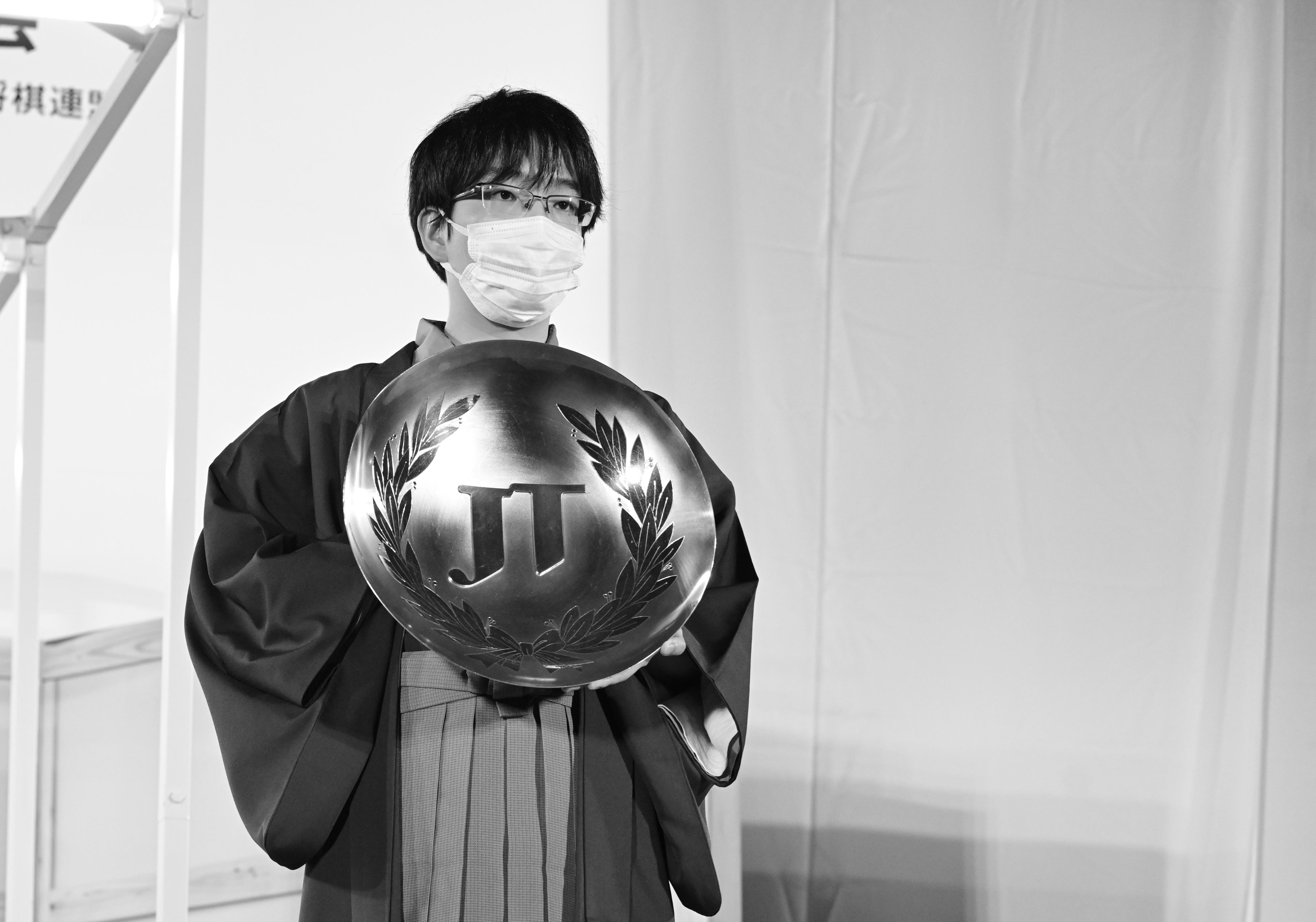JT杯を受け取った豊島将之九段は「優勝を励みにして活躍したい。藤井さんとの実力差を感じているが、諦めない姿勢を示すことができたと思う」と話しました。「ファンの応援がうれしかったです」とも。