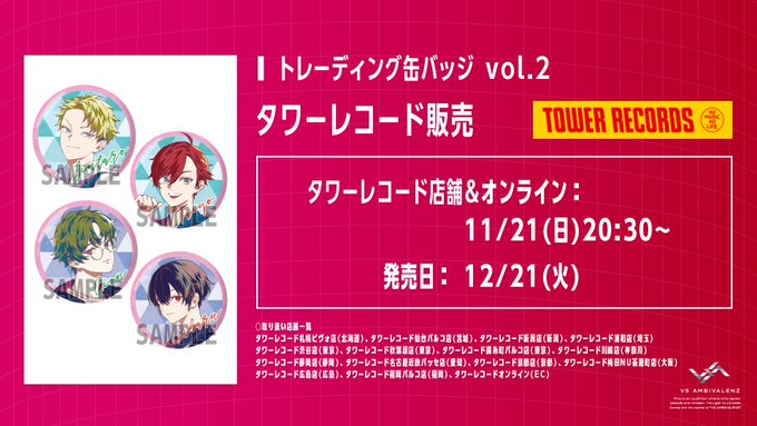 タワーレコードにて『トレーディング缶バッジ vol.2』の発売が決定!🎉