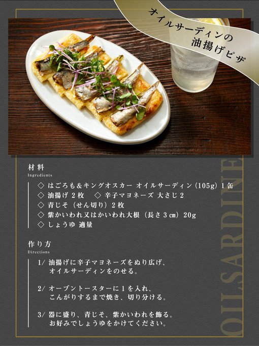 おつまみに相性バツグンな「はごろも&キングオスカー オイルサーディン」の油揚げピザはいかが?