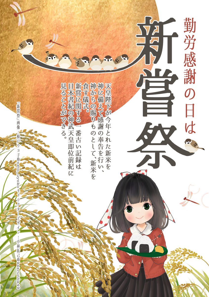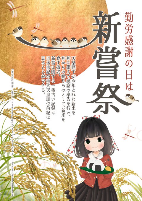 天皇陛下が、今年の新米をはじめてめし上がる儀式で、五こく豊じょうを、神さまに感謝申し上げる日です!