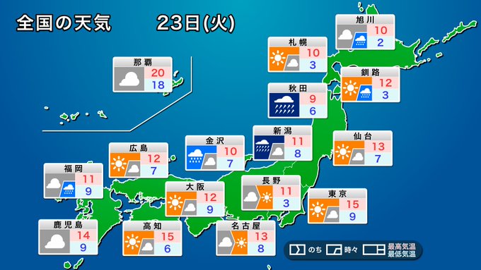 関東など太平洋側は天気が回復して晴れる見込みです。一方、日本海側は雨や雪が降りやすく、沿岸は暴風のおそれも。飛来物や交通機関への影響が心配です。 #勤労感謝の日