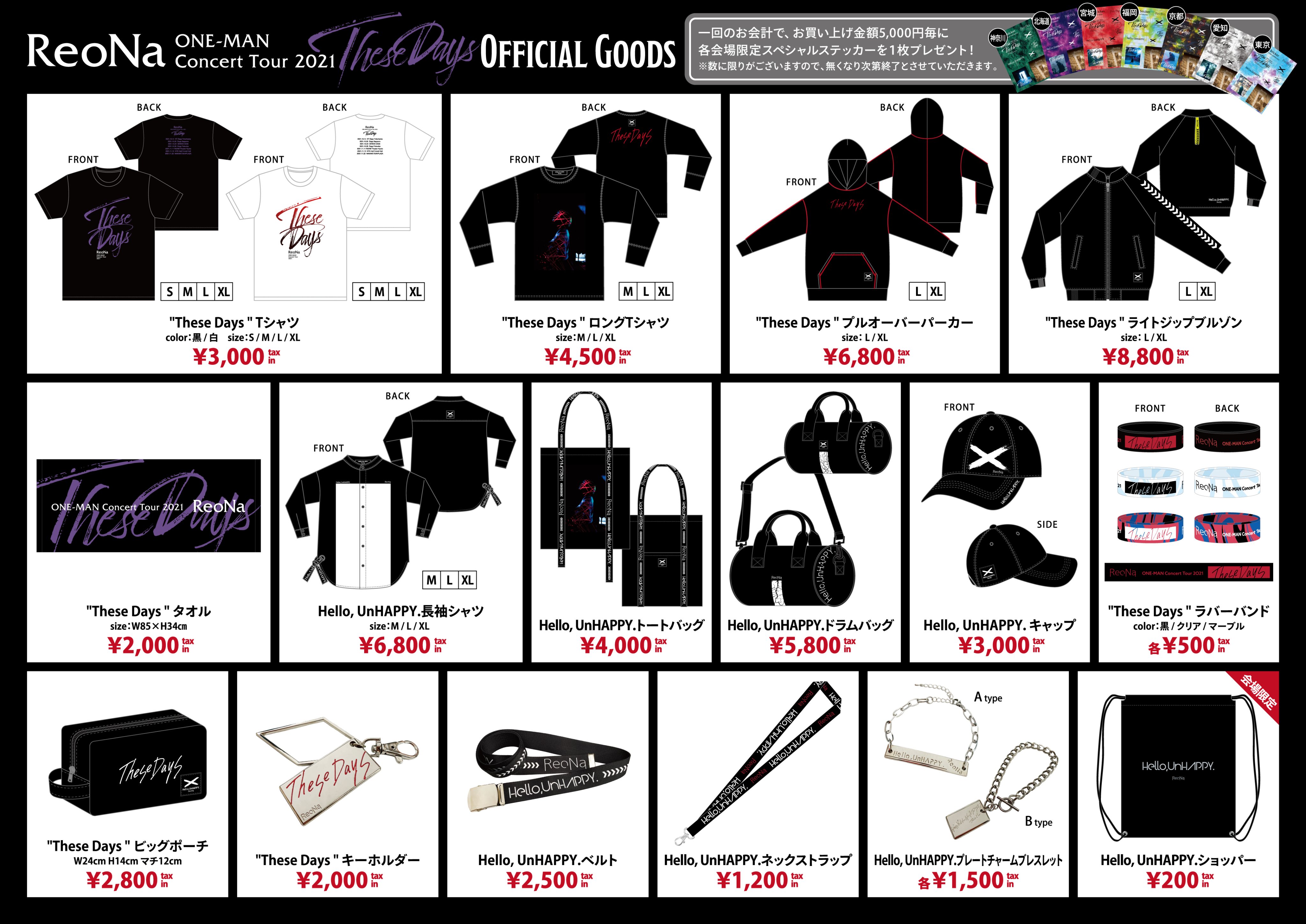 グッズご購入合計5,000円毎に、各会場限定"These Days"Special Stickerプレゼント!