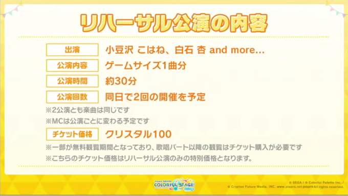 同日2回の開催で、チケットは「クリスタル×100」での販売を予定しています🎁お楽しみに😊
