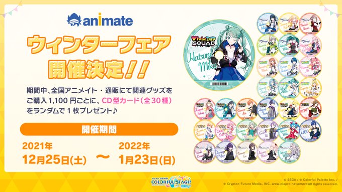 期間中に全国アニメイト・アニメイト通販にて関連グッズをご購入1,100円ごとに、CD型カードをランダムで1枚プレゼントします🎁