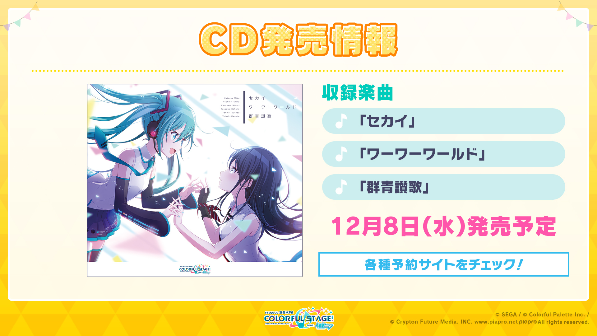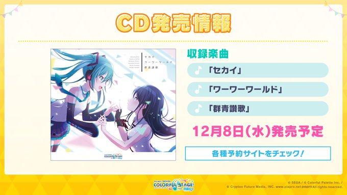 テーマソング「セカイ」「ワーワーワールド」と、アニバーサリーソング「群青讃歌」が収録されたCDが12月8日に発売🎉✨