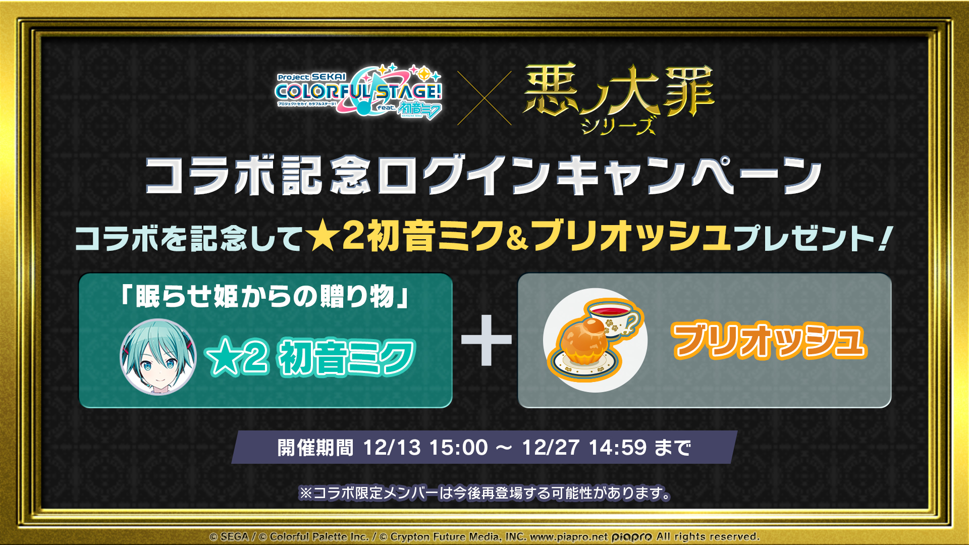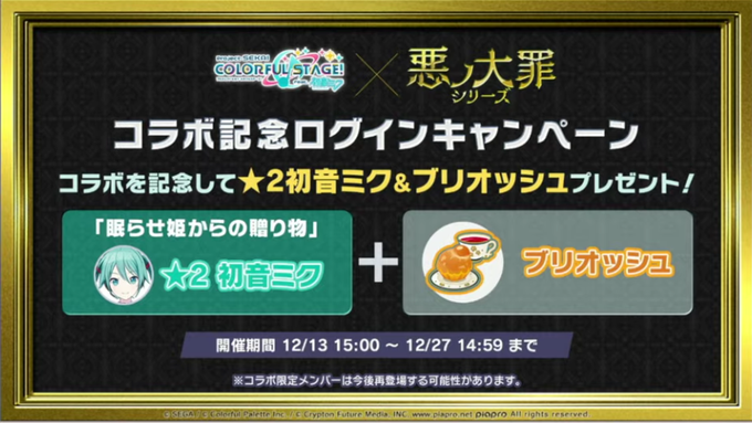 コラボを記念して、★2初音ミク&ブリオッシュをプレゼントするキャンペーンの開催が決定🎁