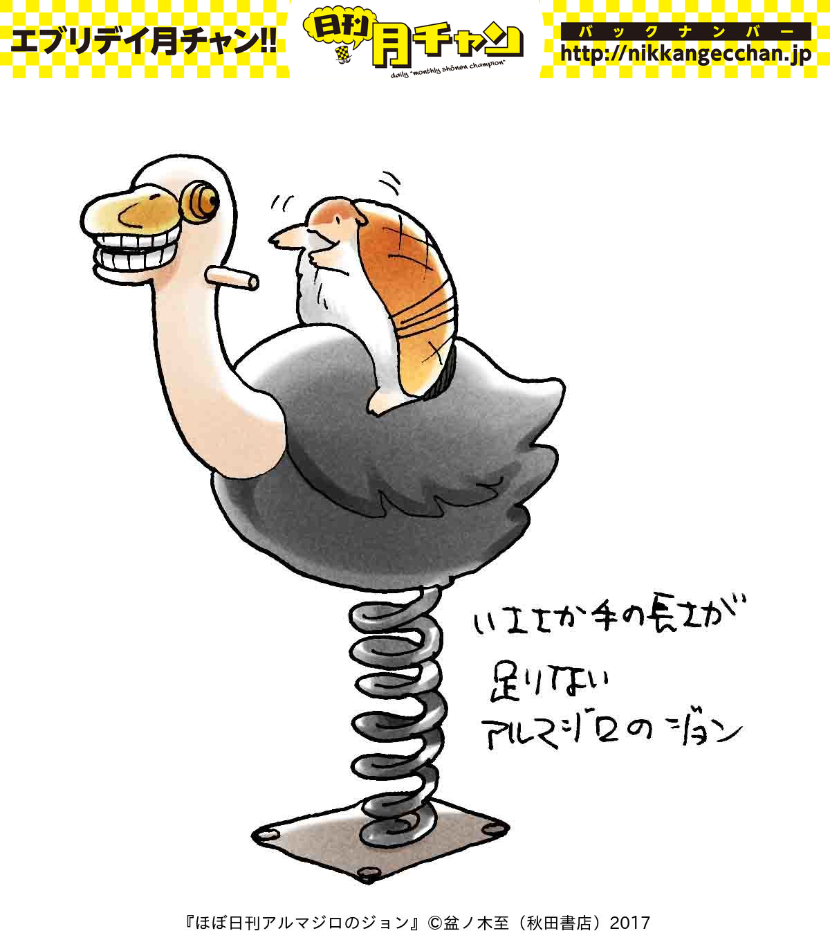 『ほぼ日刊アルマジロのジョン』公園のダチョウ @bonnoki 盆ノ木至 #ジョンかわ #吸血鬼すぐ死ぬ #日刊月チャン nikkangecchan.jp/comics/john/384 pic.twitter.com/lMQIV1EJHT