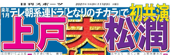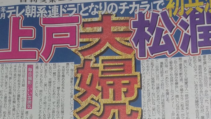 #上戸彩 が #嵐 ・ #松本潤 主演の #テレビ朝日 系ドラマ「#となりのチカラ」(22年1月スタート、木曜午後9時)で主人公の妻を演じる。松本とは初共演で夫婦役となる。脚本は #遊川和彦 さん