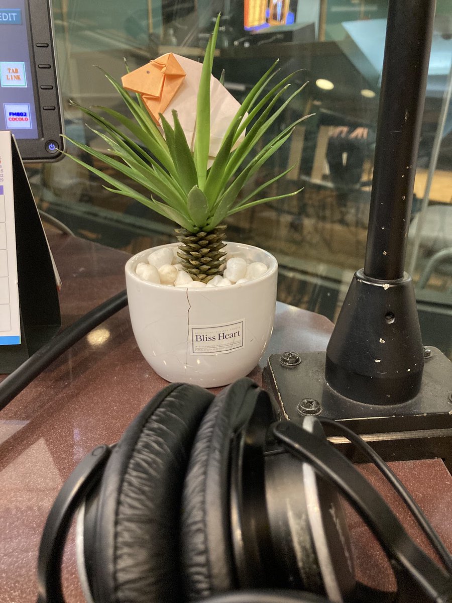 スタジオに先週から登場している羊くんは、まだ元気です。デスクの観葉植物に挟まったまま、放送を見守ってくれています。