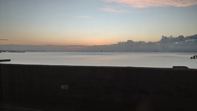 車窓🚃からの日の出前🌅(6:41)の播磨灘🌊