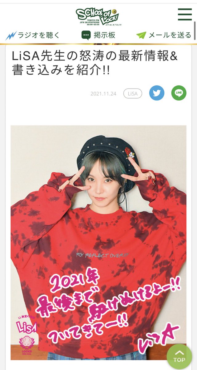 【ラジオ】TOKYO FM(全国JFN38局ネット)「SCHOOL OF LOCK!」#LiSA レギュラーコーナー「LiSA LOCKS!」、お聴き頂きありがとうございました。