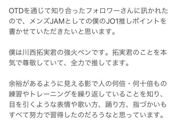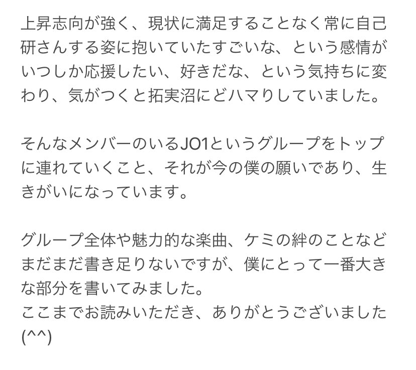 このタイミングで恐縮ですが…JO1 川西拓実のどんなところが好きかを文章にしたので、読んでいただけると幸いです。