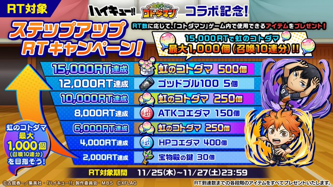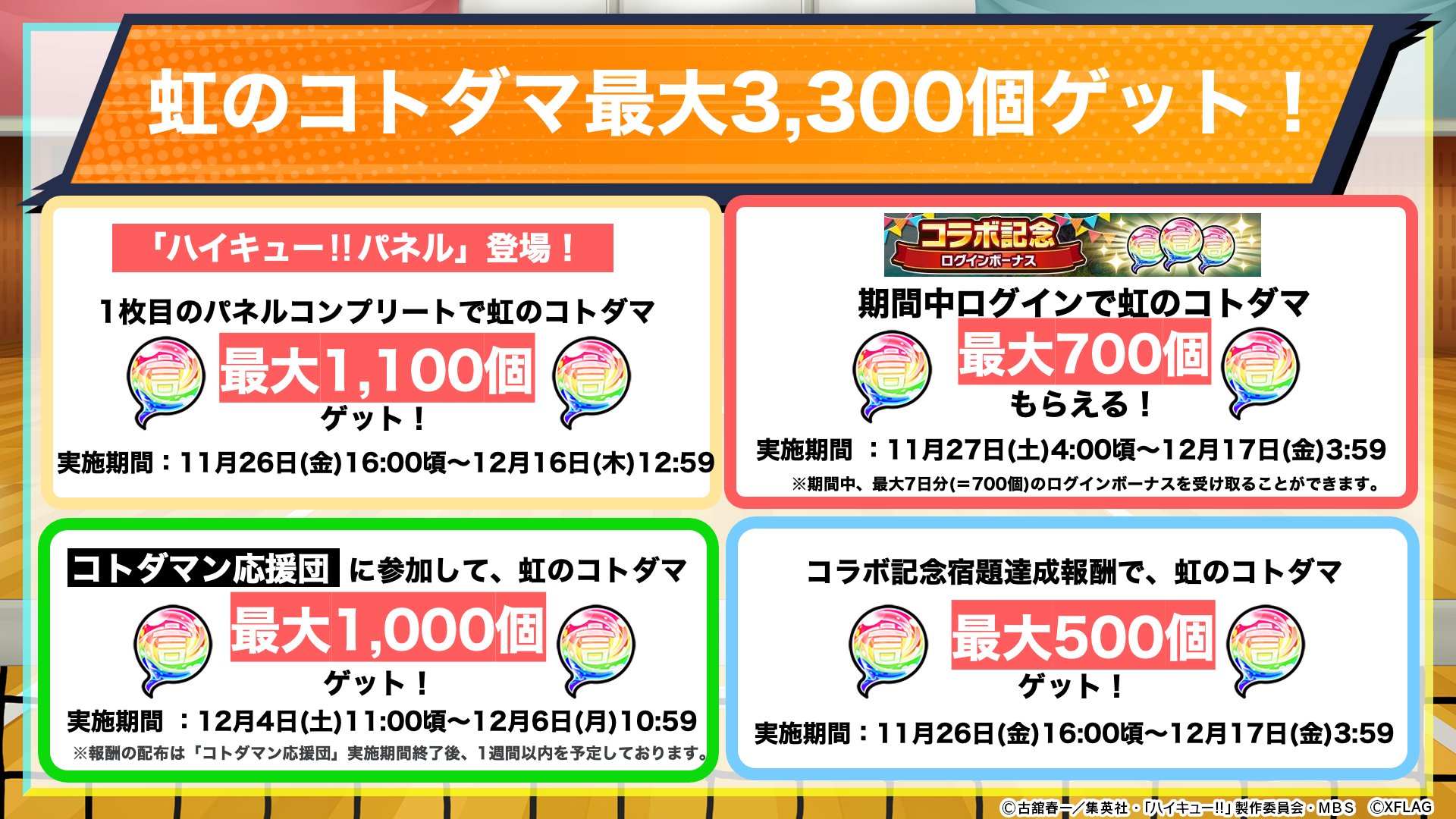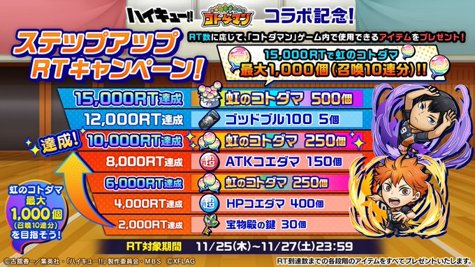 「ハイキュー!! ✕ コトダマン」コラボ期間中は「虹のコトダマ」最大3,300個ゲットできちゃうぞい!😆