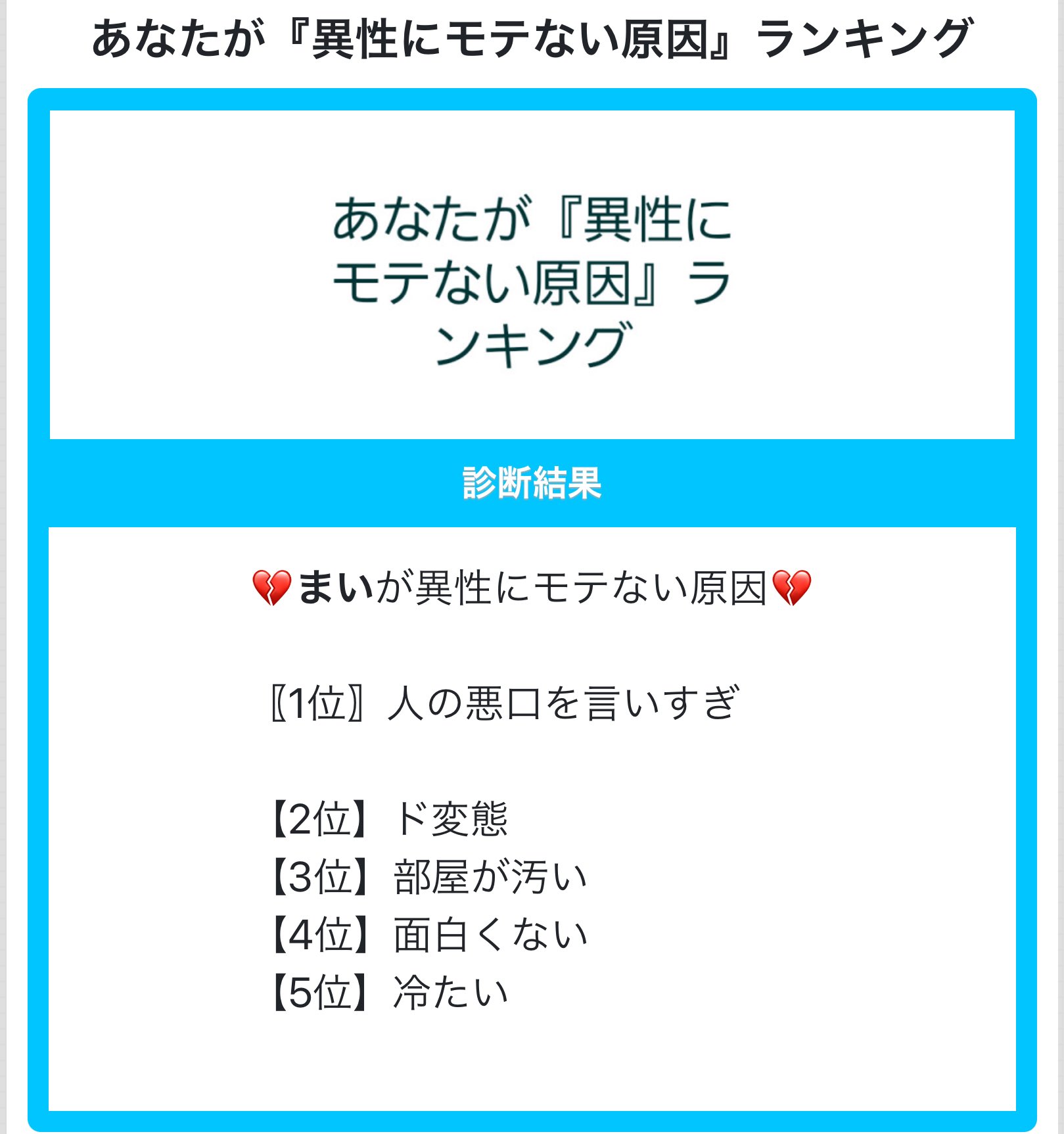 今日も #異性にモテない原因ランキング の診断