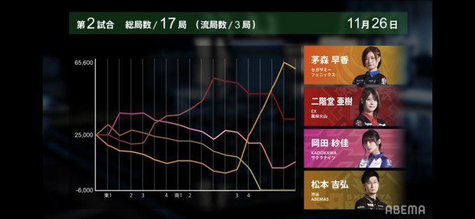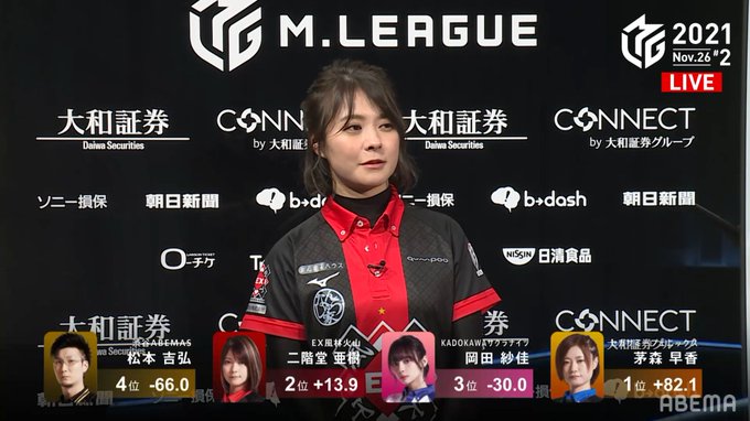 #キンマweb #麻雀 #Mリーグ #セガサミーフェニックス #EX風林火山 #KADOKAWAサクラナイツ #渋谷ABEMAS #茅森早香 #二階堂亜樹 #岡田紗佳 #松本吉弘 #ABEMA pic.twitter.com/kkYSLI9msl