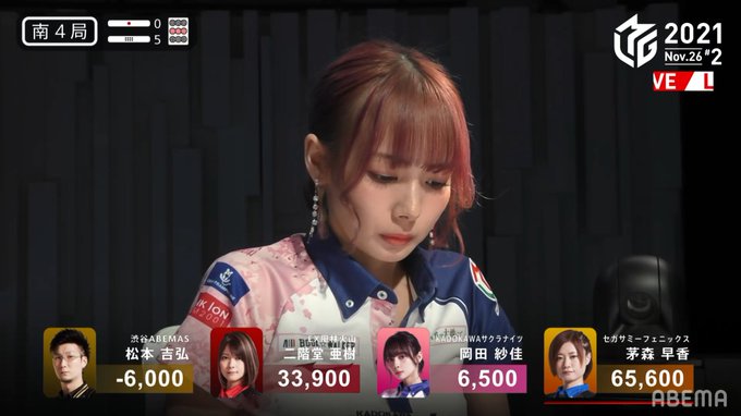 #麻雀 #Mリーグ #ABEMA #瀬戸熊直樹 #松嶋桃 #松本吉弘 #岡田紗佳 #二階堂亜樹 #日吉辰哉 pic.twitter.com/KVGVWp1HvX