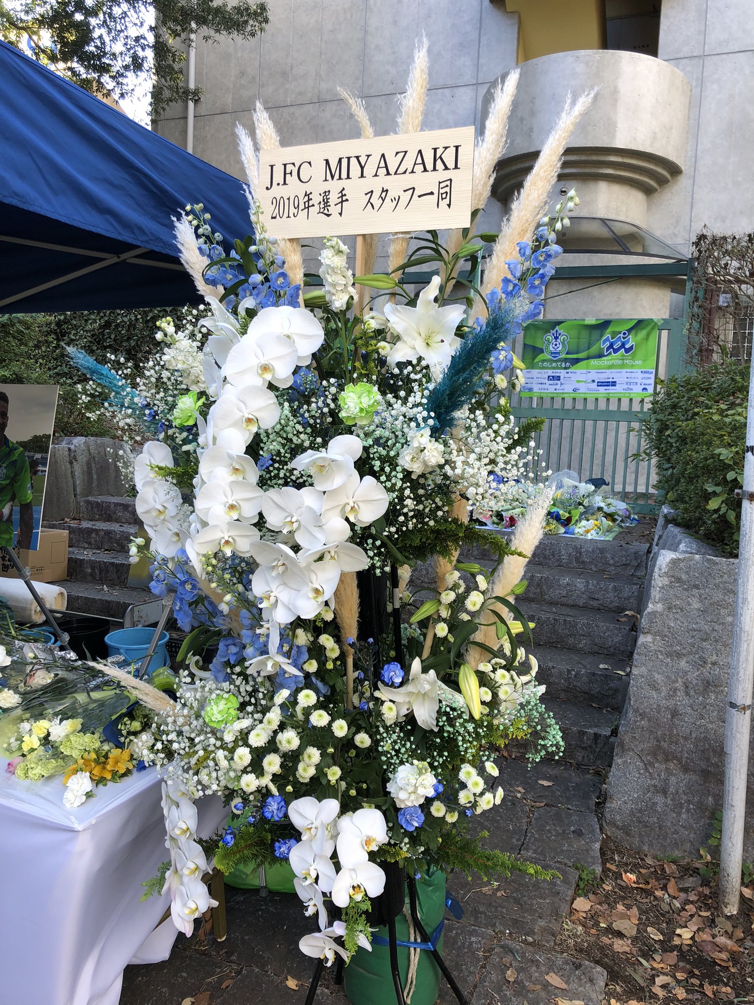 今日、献花台に飾る #オリベイラ 選手の写真やユニフォームをフロント事務所の入口に飾っていました。この2日間、「オリおはよう」とか「行ってきます」とか心の中で会話しながら過ごしてきました。