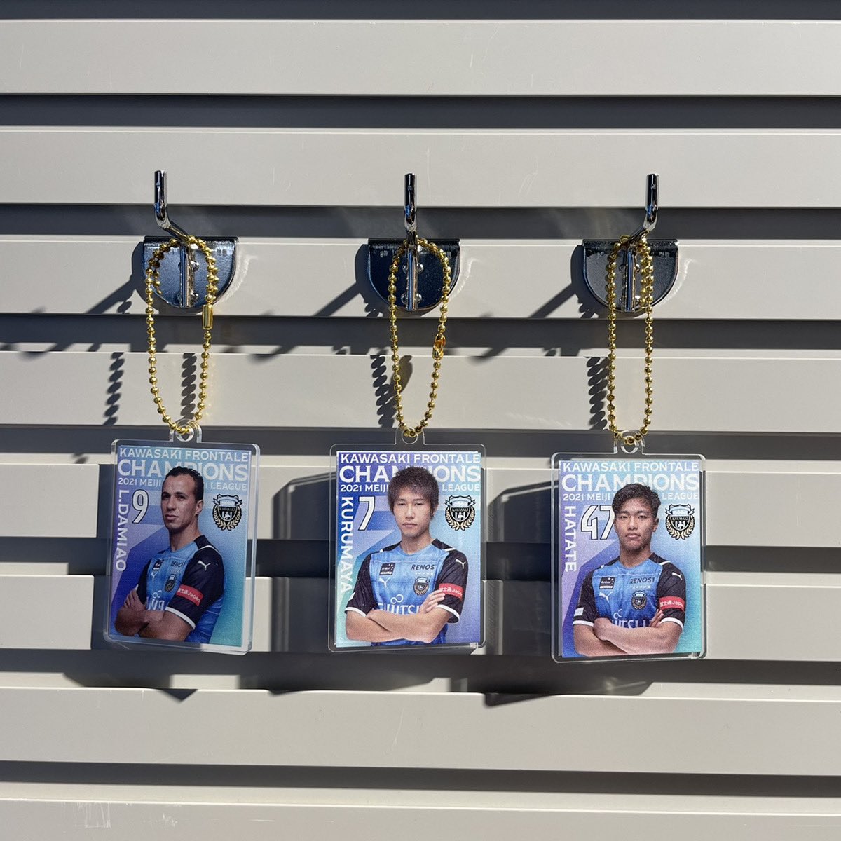 2021明治安田生命J1リーグの制覇を記念した「優勝記念選手キーホルダー」300円(税込)が再入荷✨優勝記念ということで、もちろん優勝記念ロゴ入り⭐️スタジアムを後にしたら、まずはアズネロへGO!!!!!!🐬たくさん回して下さいね☺️【アズーロ・ネロ】#frontale pic.twitter.com/WfSBp9V6jr