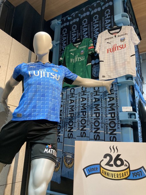 昨日発表された「2022シーズンユニフォーム」を現在アズーロ・ネロでは展示中🐬 クラブ設立 26(フロ)周年のアニバーサリーイヤーにふさわしいユニフォームぜひアズネロまでお越しください🚶お知らせはこちら💁♂️frontale.co.jp/info/2021/1127…【アズーロ・ネロ】#frontale pic.twitter.com/GUCYa4LbIX