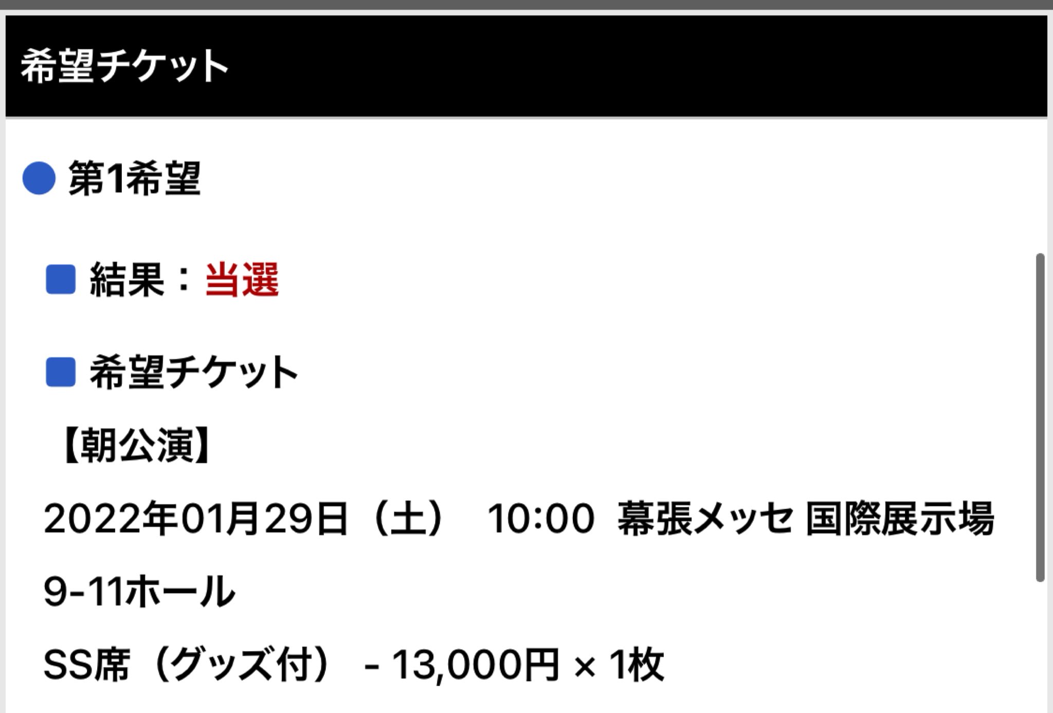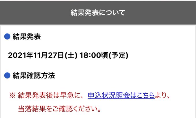 オフィシャルWEB抽選先行(一次受付)当落が発表されました📣