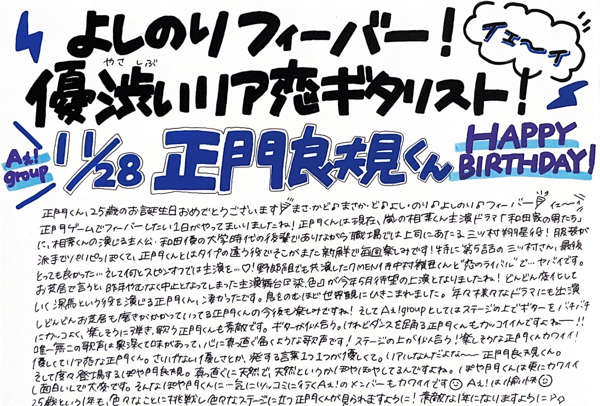 いつも誠実実直で、優しく周りをあったかい空気にしてくれる正門くんが大好きです!実りのある一年となりますように…!🎸
