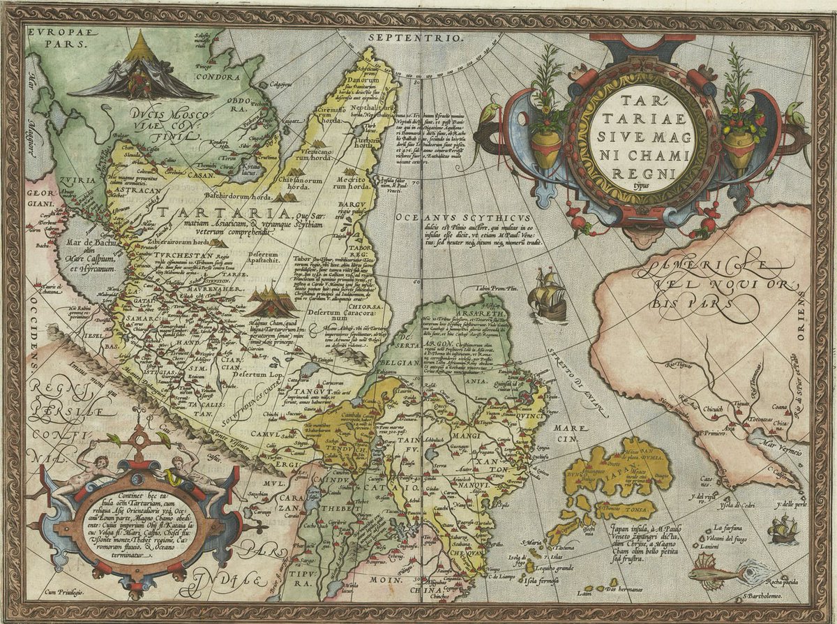 マゼランは1520年に太平洋に到達していましたが、この図では太平洋が狭く認識され、アジアと北米の間には想像上の海峡が描かれています🗺️ pic.twitter.com/v50LbUz95I