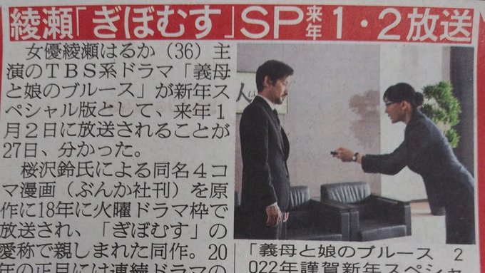 #綾瀬はるか 主演の #TBS 系ドラマ「#義母と娘のブルース 2022年謹賀新年スペシャル」が来年1月2日午後9時から放送される