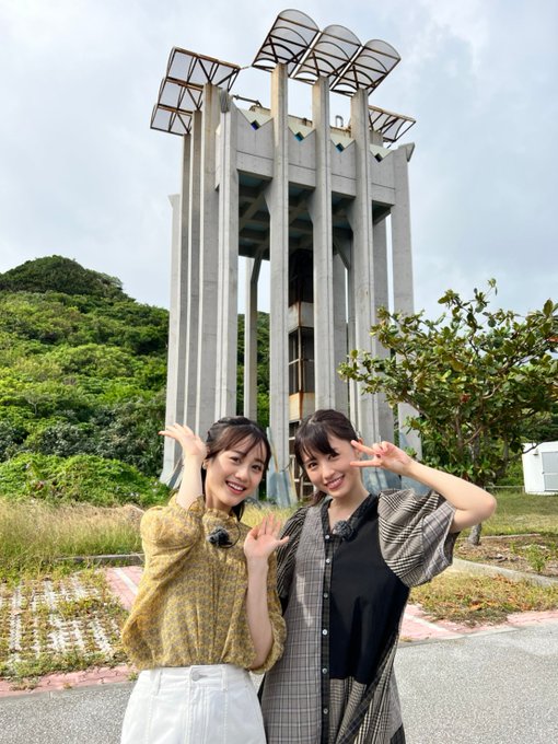 あざまサンサンビーチの近くを散策中の伊藤さんと逢田さん🏖