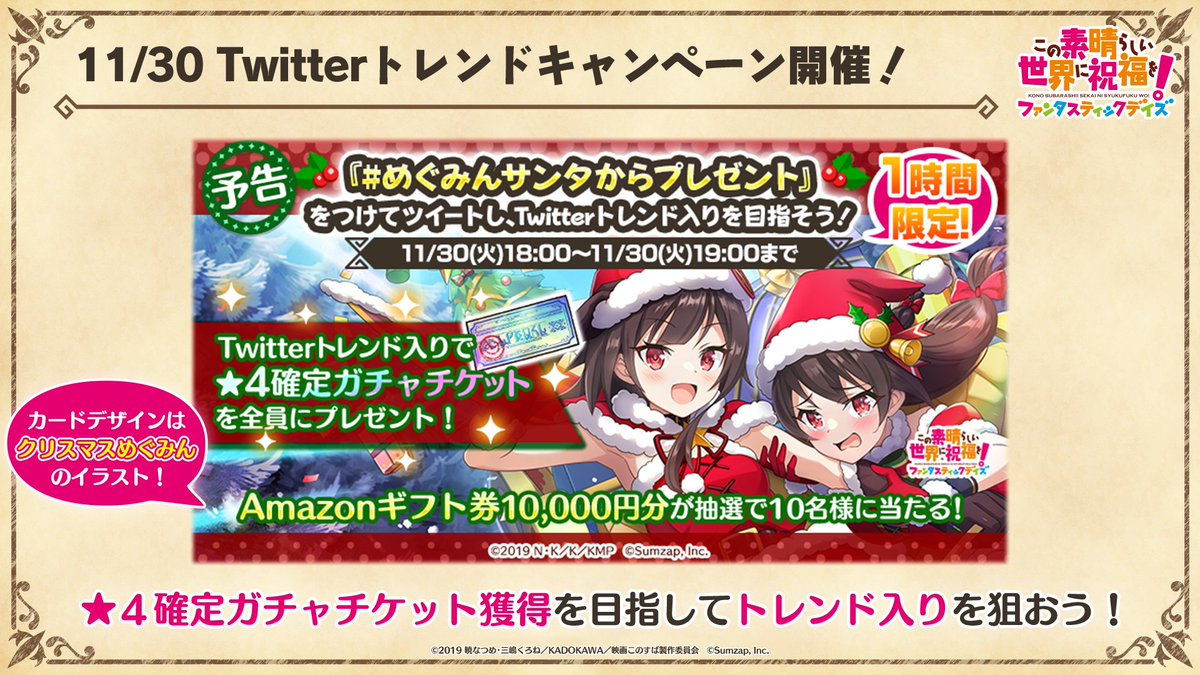 対象期間内に『#めぐみんサンタからプレゼント』をつけてツイートをすると、