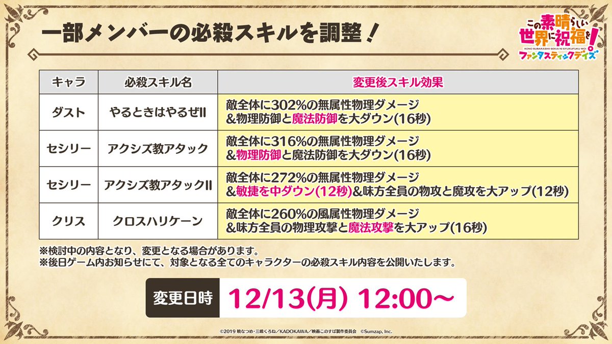 一部メンバーの必殺スキルを調整💡