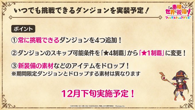 いつでも挑戦できるダンジョンを実装予定❗