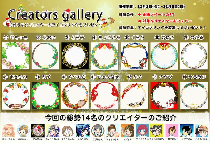 おはまる☀️1週間の始まり♪そして大型イベント企画の情報も公開(๑•̀ㅂ•́)و✧今週金曜日に開催される「Creators gallery」のアイコンリング一覧がこちら!素敵な作品が盛り沢山!この素敵な企画に参加するしかないでしょ😉✨それでは今週もよろしくお願いします😃✨