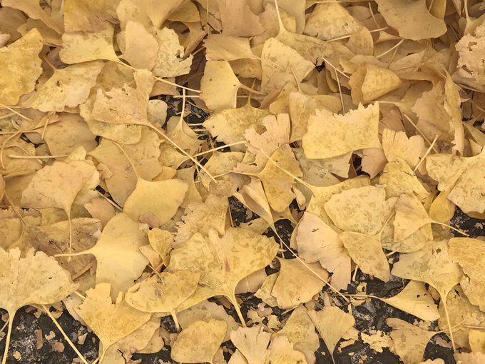 じゅうたんみたいに金色の葉っぱが広がっていて