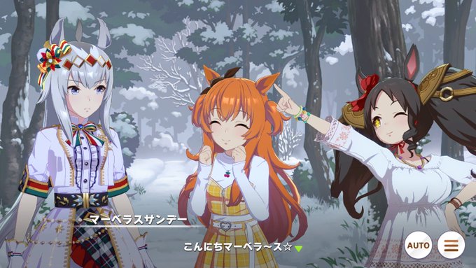 今回のストーリーイベントでは、おそらく初出となるマーベラスサンデーの私服姿が確認できます('ω')ノ