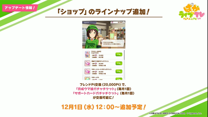 お馴染みのバラエティコーナーや「ぱかゼミ!」はもちろん、ゲーム最新情報や今後のアップデート情報などをお届け!