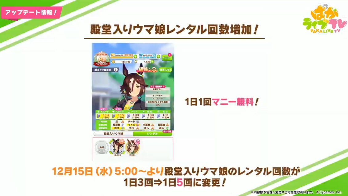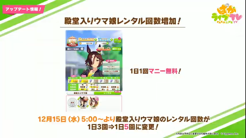 ・殿堂入りウマ娘レンタル回数が3⇒5に追加