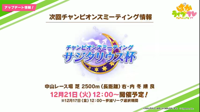 次回チャンピオンズミーティングは「サジタリアス杯」