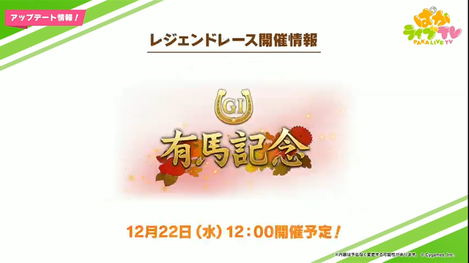 「出張版 ぱかライブTV Vol.12」は12月20日(月)20:00出走予定!