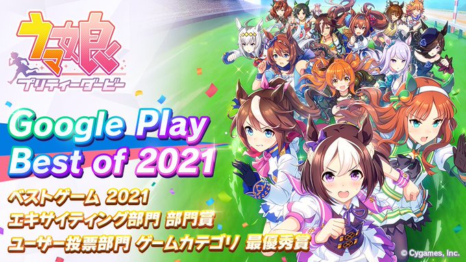 ゲーム「ウマ娘 プリティーダービー」が「Google Play ベストオブ 2021」ベストゲーム2021ほか、3部門を受賞!