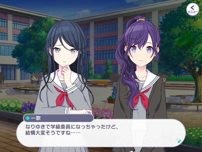 同じ委員会(学級委員)なのはこちらのエリア会話で確認されています。作詞組と奏&穂波の掘り下げに期待機膨らみますね...! #プロセカ twitter.com/appmedia_sekai… pic.twitter.com/R8MTw1BUH5