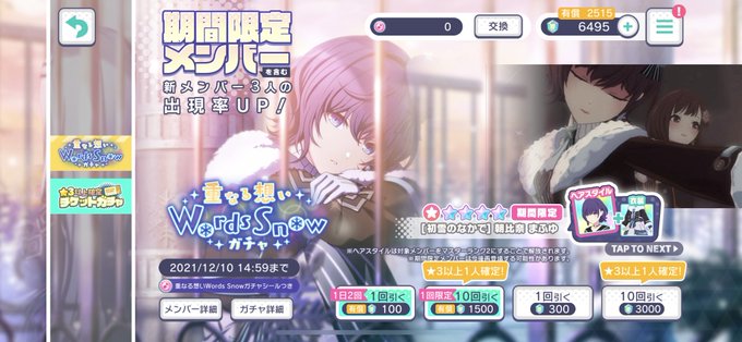 本日15時から新メンバーが登場する「重なる想いWords Snowガチャ」を開催いたしました✨