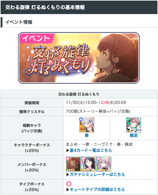 チアフルカーニバルイベント「交わる旋律 灯るぬくもり」が開始しました!バッジ交換報酬は奏と穂波です。