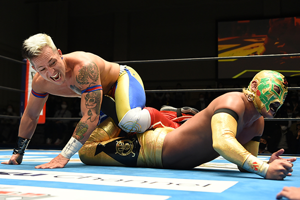 金丸が頭脳プレーで攻勢に出るも、最後はデスペラードがピンチェ・ロコで仕留め“同門対決”に勝利!