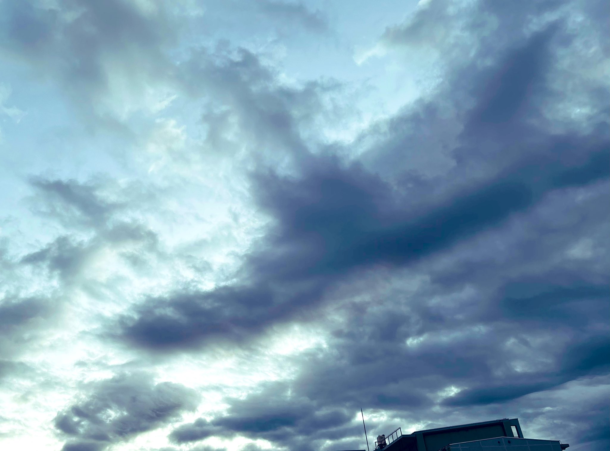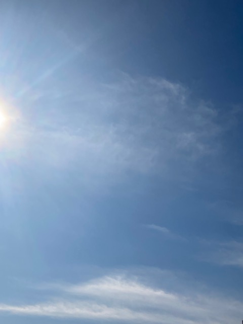 暖かい日差しの下横長の白雲が浮かんでポワポワしている晴れ日和🌞