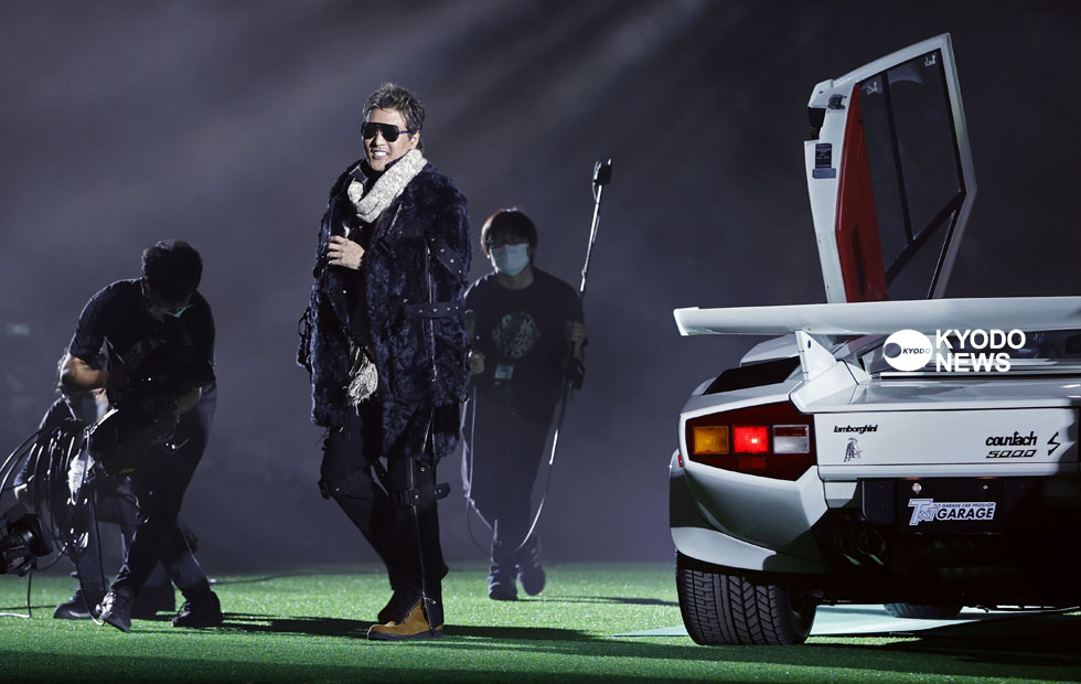 【#lovefighters】#日本ハム のファンフェスティバル2021に #新庄剛志 監督がド派手に登場しました。白煙の中から白い #ランボルギーニ #カウンタック が登場。シザーズドアを開けっぱなしのまま #BIGBOSS が運転しながら場内に現れました pic.twitter.com/1PMBoeKxGb