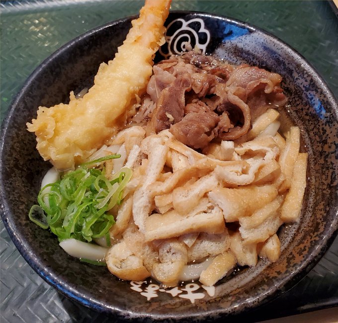肉うどんにエビ天をトッピング🍤👍