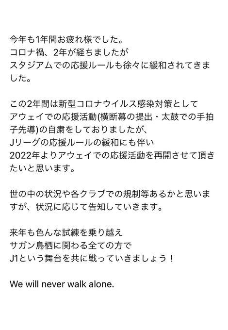 サガン鳥栖に関わる全ての皆様お疲れ様でした。